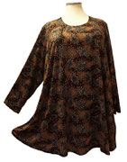 Kaschierend, chic. Ausschnitt in Wohlfühlweite. Lange Ärmel.   95 % Viskose 5 % Elasthan   Maße:  G1 Größe 44-50: Brustumfang 130 cm dehnbar bis 150 cm, Länge 84 cm G2 Größe 48-54: ... (mehr lesen)